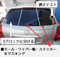 ②モール・ワイパー軸・ステッカー等をマスキングする